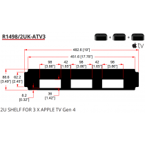 2U Vented Rack Shelf & Magnetic Faceplate For 3 x Apple TV