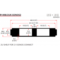 2U Vented Rack Shelf & Magnetic Faceplate For 2 x Sonos Connect