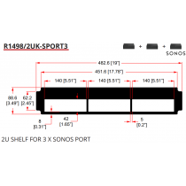 2U Vented Rack Shelf & Magnetic Faceplate For 3 x Sonos Ports