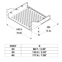 3U Sliding Rack Shelf With Vented Tray 367mm / 14" Deep R1297-SL-3UK