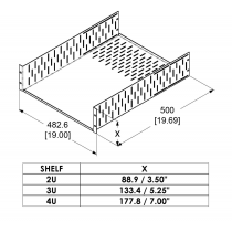 2U Adjustable Clamping Utility Rack Shelf - Black, 381mm Depth