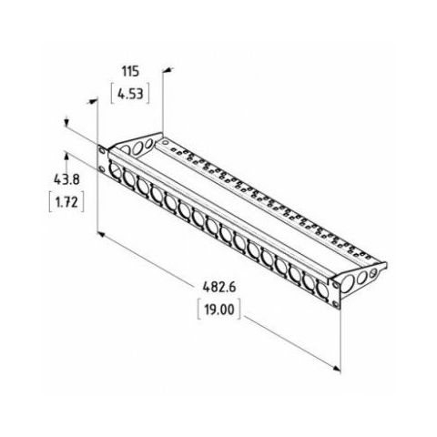 This Rack Panel has been manufactured to exacting standards from 1.5mm mild steel which is then folded for a more rigid panel. The Rack Panel has then been Black Powder Coated. This 1U rack panel has been punched for 16 Neutrik D series connectors. The panel has a lacing bar for cable support and cable management aswell as an ID strip for connector identification.