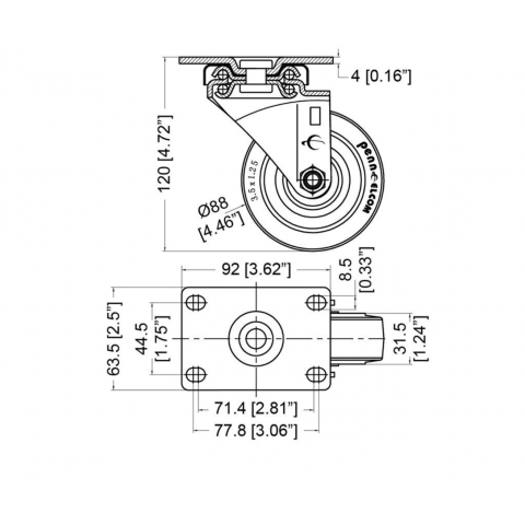 89mm Braked Swivel Castor with #2 Top Plate