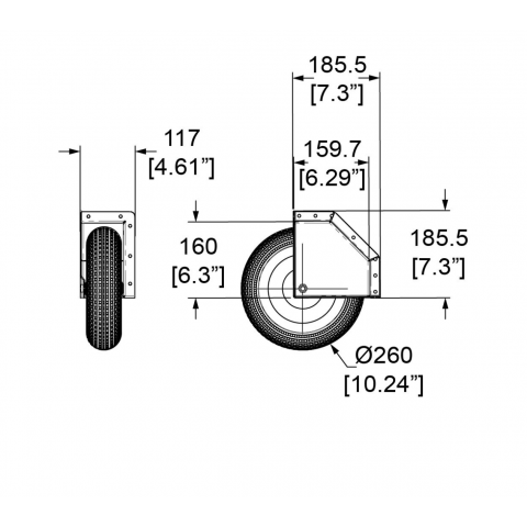 Conquer rough terrains with ease using our very large steel corner castor, equipped with a robust 260mm pneumatic rubber wheel designed for rolling over gravel, grass, or stony paths effortlessly. Whether you're navigating outdoor environments, construction sites, or uneven surfaces, this heavy-duty castor ensures smooth and reliable mobility.